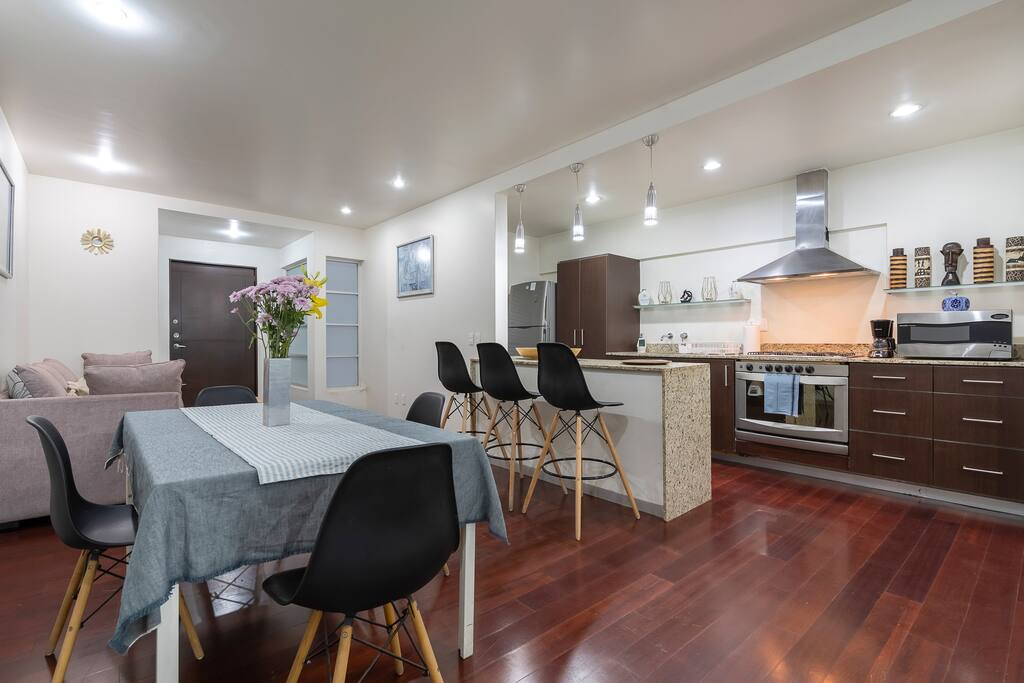 Welcome to our stunning 2-bedroom, 2-bathroom condo nestled in the heart of La Condesa, one of Mexico City's most vibrant and sought-after neighborhoods. Outside, a charming balcony awaits, where you can sip your morning coffee or enjoy a glass of wine in the evening while taking in the sights and sounds of Condesa. From this central location, you'll have easy access to the neighborhood's renowned cafes, restaurants, and cultural hotspots. This spacious and thoughtfully designed apartment provides ample room for up to 4 guests. The open-concept living and dining area is perfect to enjoy time with your friends or family. Bedrooms: Master Bedroom: A luxurious haven with a comfortable king-sized bed, an en-suite bathroom, a walk-in closet and a private terrace where you can sip your morning coffee or enjoy a glass of wine in the evening. Second Bedroom: A cozy retreat with a queen-sized bed. Kitchen: The fully equipped kitchen boasts high-end appliances and all the cookware you'll need to whip up delicious meals. Whether you're a culinary enthusiast or prefer dining out at the nearby restaurants, this kitchen has you covered. Bathroom: The master bedroom has an en-suite bathroom with shower appliances. The second bathroom is right outside the second bedroom and it has shower. Amenities: High-speed Wi-Fi Smart TV with streaming services Washer and dryer Free Parking 24/7 security Transportation: Public transportation is easily accessible, with Metro and Metrobus stations nearby, making it a breeze to explore other parts of the city, including historic downtown, Chapultepec Park, and more. We are dedicated to ensuring your stay is perfect. Our local recommendations and personalized service will help you make the most of your time in Mexico City. Book your stay in this exquisite 2-bedroom, 2-bathroom apartment in Condesa today and immerse yourself in the magic of Mexico City. Your unforgettable adventure awaits! You'll be in the heart of Roma Norte and Condesa, surrounded by trendy cafes, bars, restaurants, boutiques, and cultural hotspots. Stroll through tree-lined streets, visit the famous Parque México, and explore the art galleries that make this area a hub for creativity and culture.