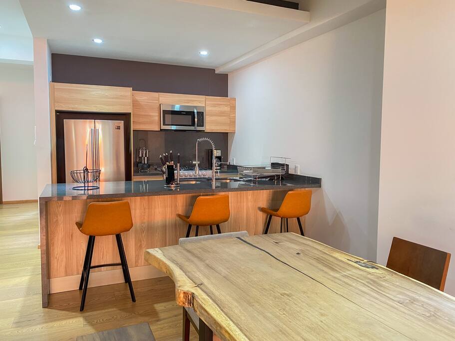 Welcome to your dream getaway in the heart of Mexico City's most vibrant and trendy neighborhoods – Roma Norte/Condesa. This stunning 3-bedroom, 3-bathroom apartment offers a perfect blend of modern comfort and classic elegance, ensuring a memorable stay for you and your guests. This spacious and thoughtfully designed apartment provides ample room for up to 6 guests. The open-concept living and dining area is bathed in natural light and tastefully decorated with a mix of contemporary and traditional Mexican furnishings. Bedrooms: Master Bedroom: A luxurious haven with a comfortable queen-sized bed, an en-suite bathroom with both bathtub and shower, a walk-in closet, and a private balcony where you can sip your morning coffee or enjoy a glass of wine in the evening. Second Bedroom: A cozy retreat with a queen-sized bed and plenty of closet space for your belongings. En-suite bathroom Third Bedroom: A cozy retreat with a queen-sized bed and plenty of closet space for your belongings. Bathrooms: Each of the three bathrooms is a work of art in itself, featuring stylish tiles, modern fixtures, and all the essentials you need for a refreshing shower or a relaxing soak after a day of exploring. Two of them are en-suite in the master and the second bedroom. The third bathroom is right outside the third bedroom. Kitchen: The fully equipped kitchen boasts high-end appliances and all the cookware you'll need to whip up delicious meals. Whether you're a culinary enthusiast or prefer dining out at the nearby restaurants, this kitchen has you covered. Amenities: High-speed Wi-Fi Smart TV with streaming services Washer and dryer Free Parking 24/7 security Neighborhood: You'll be in the heart of Roma Norte and Condesa, surrounded by trendy cafes, bars, restaurants, boutiques, and cultural hotspots. Stroll through tree-lined streets, visit the famous Parque México, and explore the art galleries that make this area a hub for creativity and culture. Transportation: Public transportation is easily accessible, with Metrobus stations nearby, making it a breeze to explore other parts of the city, including historic downtown, Chapultepec Park, and more. Your Hosts: We are dedicated to ensuring your stay is perfect. Our local recommendations and personalized service will help you make the most of your time in Mexico City. Book your stay in this exquisite 3-bedroom, 3-bathroom apartment in Roma Norte/Condesa today and immerse yourself in the magic of Mexico City. Your unforgettable adventure awaits! The building has an amazing rooftop and the 12th floor with an infinity pool and plenty of space. The gym is located on the 11th floor and is equipped with cardio and weight lifting equipment I'll be available for anything you need to make sure you're having the best possible experience. Located in La Roma just steps away from La Condesa, both neighborhoods known for their luxury bohemian style, a rich gastronomical offer (from the best street tacos to Mexico's best restaurants), fun nightlife for all tastes, a variety of art galleries, interesting boutiques, parks and streets full of trees. You'll always find people walking outside enjoying the day, walking their dogs or riding a bike. Centric as it gets with most of places of interest of Mexico City 20 minutes away. You'd me able to walk almost everywhere, also renting a bike is a great way to go around the city but Uber always is an option. The parking space is medium, a large truck wont fit. The parking space is in front of a neighbor's parking place, so you'll have to leave your keys with the doorman.