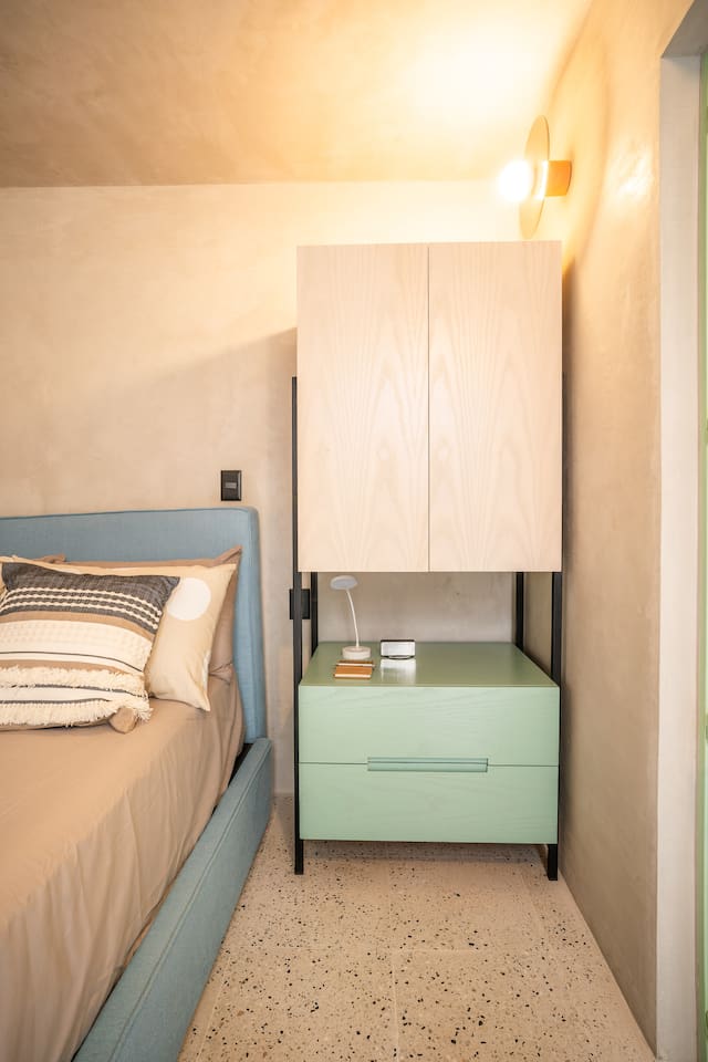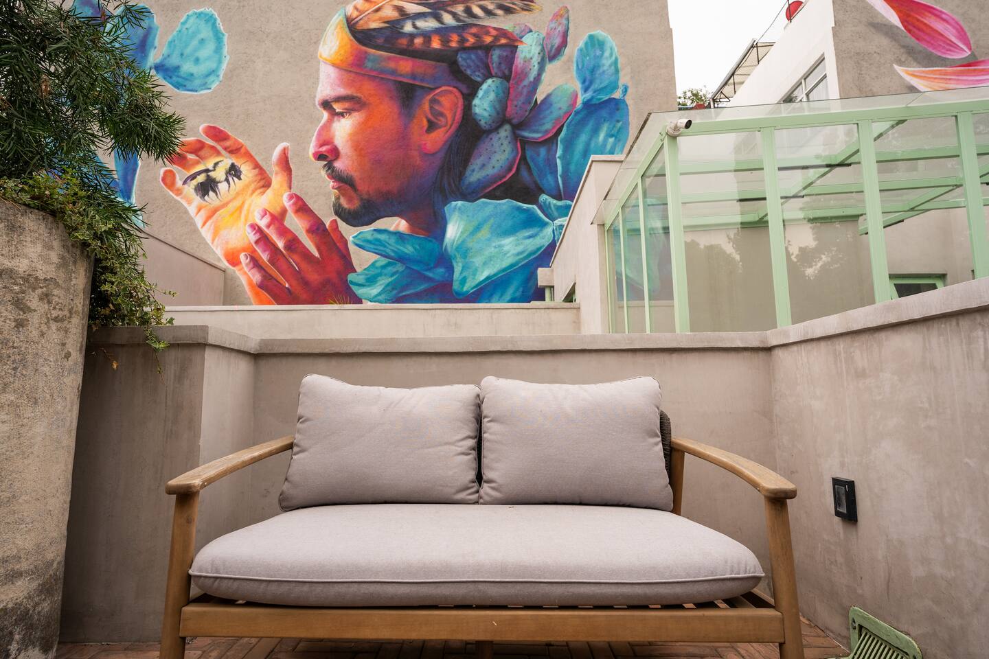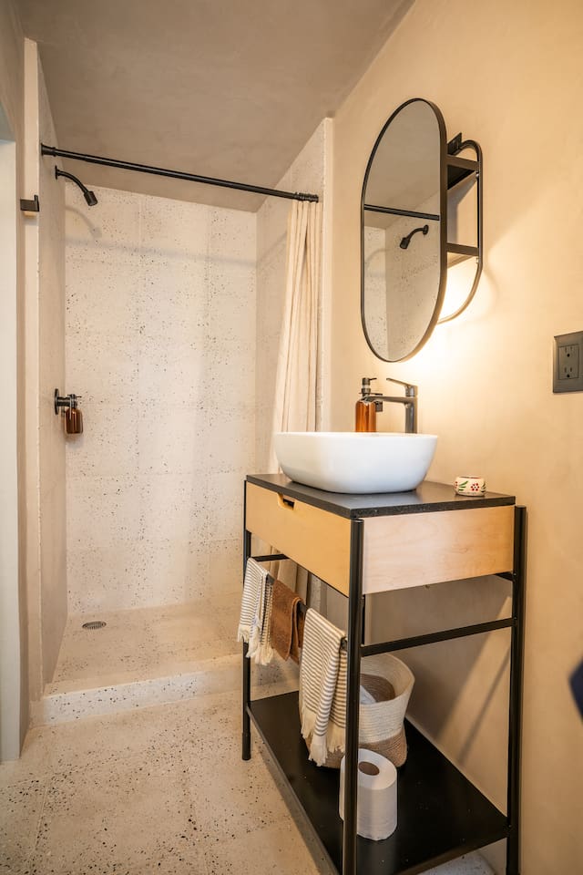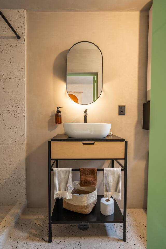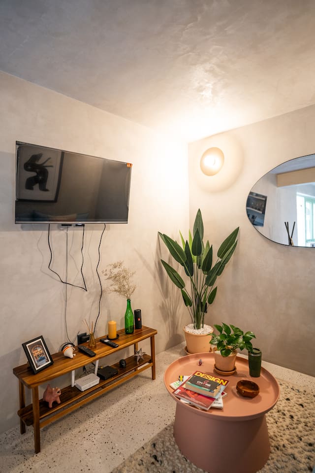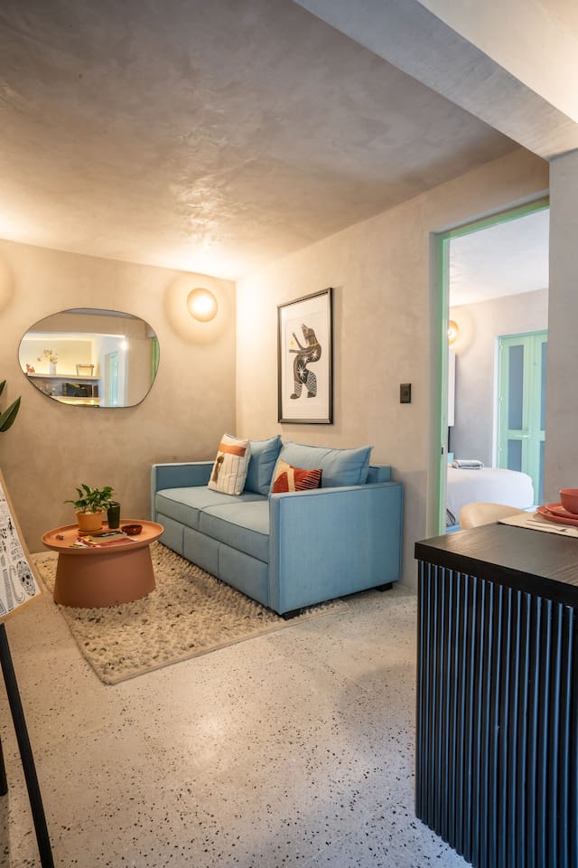 Discover this charming and stylish apartment in the heart of Coyoacán! Perfect for up to 3 guests, this cozy space offers comfort and a touch of local character. Located in a newly built building designed with the traditional essence of Coyoacán, it provides a peaceful retreat while being close to the area’s best attractions. The apartment is just 200 meters from the Frida Kahlo Museum and only a 5-minute walk from Coyoacán’s central plaza The apartment: Living Area: A cozy living room with a small but fully equipped kitchen, a comfy sofa bed, a TV, and a full bathroom. Bedroom: A comfortable queen-size bed with an ensuite bathroom for added privacy. Outdoor Space: Enjoy a small private terrace, perfect for a morning coffee or evening relaxation. Building Amenities Laundry Area: Shared washer-dryers available for guests (cleaning products not included). Rooftop Terraces: Two beautifully furnished rooftops featuring stunning murals, outdoor furniture, and a ping-pong table for entertainment. Security: The building has 24/7 security for your peace of mind. We want to ensure you have a smooth and enjoyable stay! While we respect your privacy, we are always available via message or call to assist with any questions, recommendations, or issues. Whether you need tips on exploring Coyoacán or help during your stay, feel free to reach out! Coyoacán is one of the most vibrant and historic neighborhoods in Mexico City. You'll be within walking distance of charming plazas, artisan markets, and amazing local restaurants.