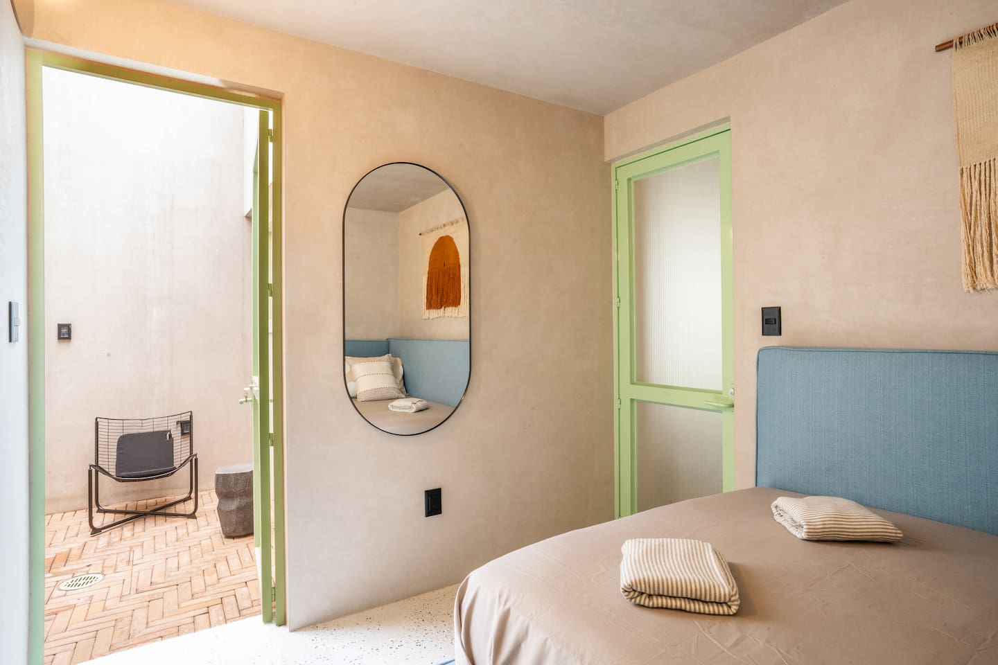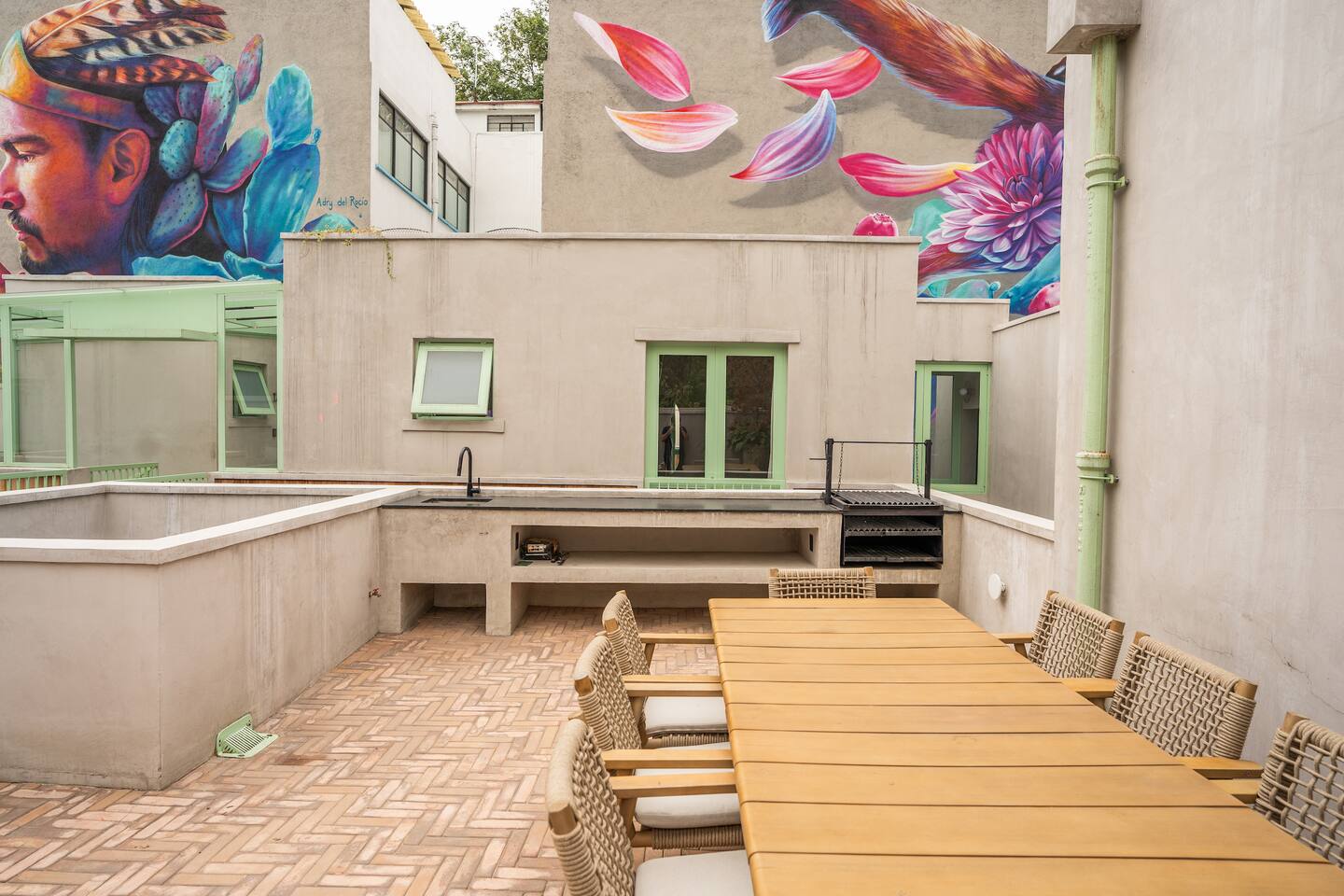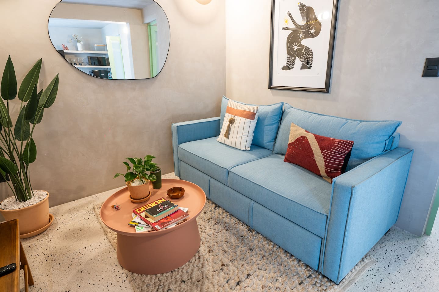Discover this charming and stylish apartment in the heart of Coyoacán! Perfect for up to 3 guests, this cozy space offers comfort and a touch of local character. Located in a newly built building designed with the traditional essence of Coyoacán, it provides a peaceful retreat while being close to the area’s best attractions. The apartment is just 200 meters from the Frida Kahlo Museum and only a 5-minute walk from Coyoacán’s central plaza The apartment: Living Area: A cozy living room with a small but fully equipped kitchen, a comfy sofa bed, a TV, and a full bathroom. Bedroom: A comfortable queen-size bed with an ensuite bathroom for added privacy. Outdoor Space: Enjoy a small private terrace, perfect for a morning coffee or evening relaxation. Building Amenities Laundry Area: Shared washer-dryers available for guests (cleaning products not included). Rooftop Terraces: Two beautifully furnished rooftops featuring stunning murals, outdoor furniture, and a ping-pong table for entertainment. Security: The building has 24/7 security for your peace of mind. We want to ensure you have a smooth and enjoyable stay! While we respect your privacy, we are always available via message or call to assist with any questions, recommendations, or issues. Whether you need tips on exploring Coyoacán or help during your stay, feel free to reach out! Coyoacán is one of the most vibrant and historic neighborhoods in Mexico City. You'll be within walking distance of charming plazas, artisan markets, and amazing local restaurants.