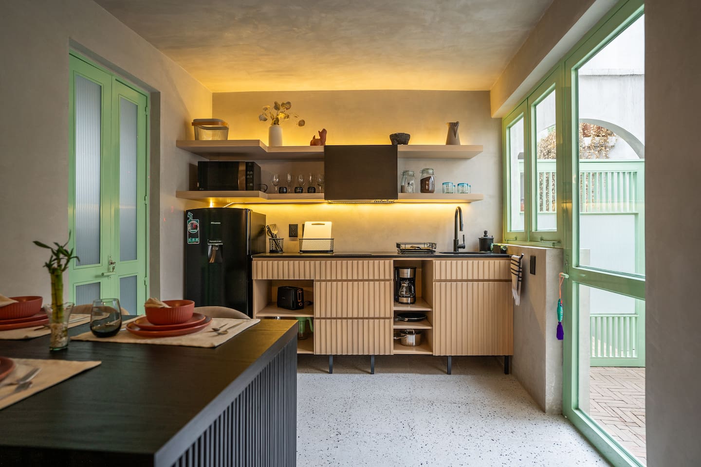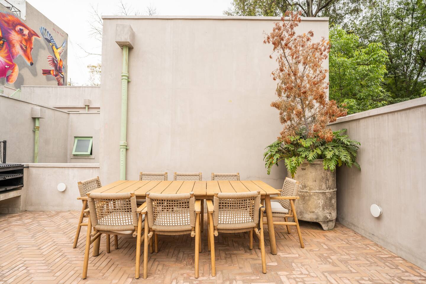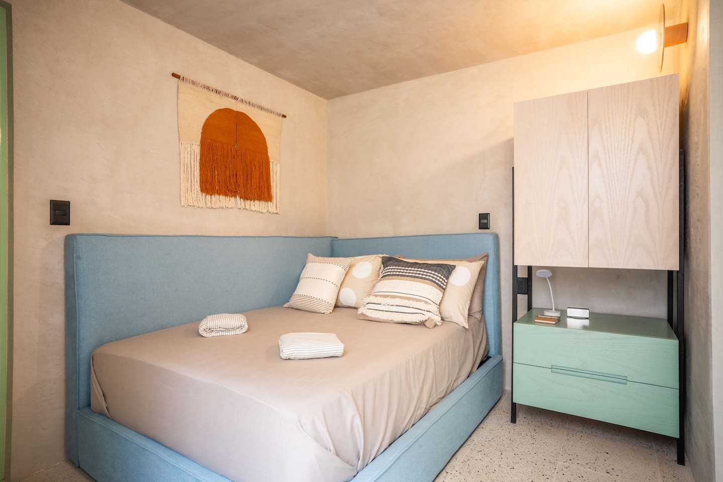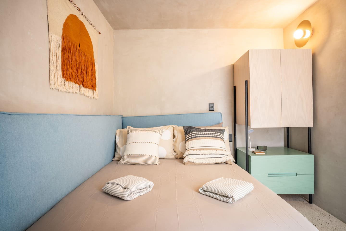 Discover this charming and stylish apartment in the heart of Coyoacán! Perfect for up to 3 guests, this cozy space offers comfort and a touch of local character. Located in a newly built building designed with the traditional essence of Coyoacán, it provides a peaceful retreat while being close to the area’s best attractions. The apartment is just 200 meters from the Frida Kahlo Museum and only a 5-minute walk from Coyoacán’s central plaza The apartment: Living Area: A cozy living room with a small but fully equipped kitchen, a comfy sofa bed, a TV, and a full bathroom. Bedroom: A comfortable queen-size bed with an ensuite bathroom for added privacy. Outdoor Space: Enjoy a small private terrace, perfect for a morning coffee or evening relaxation. Building Amenities Laundry Area: Shared washer-dryers available for guests (cleaning products not included). Rooftop Terraces: Two beautifully furnished rooftops featuring stunning murals, outdoor furniture, and a ping-pong table for entertainment. Security: The building has 24/7 security for your peace of mind. We want to ensure you have a smooth and enjoyable stay! While we respect your privacy, we are always available via message or call to assist with any questions, recommendations, or issues. Whether you need tips on exploring Coyoacán or help during your stay, feel free to reach out! Coyoacán is one of the most vibrant and historic neighborhoods in Mexico City. You'll be within walking distance of charming plazas, artisan markets, and amazing local restaurants.