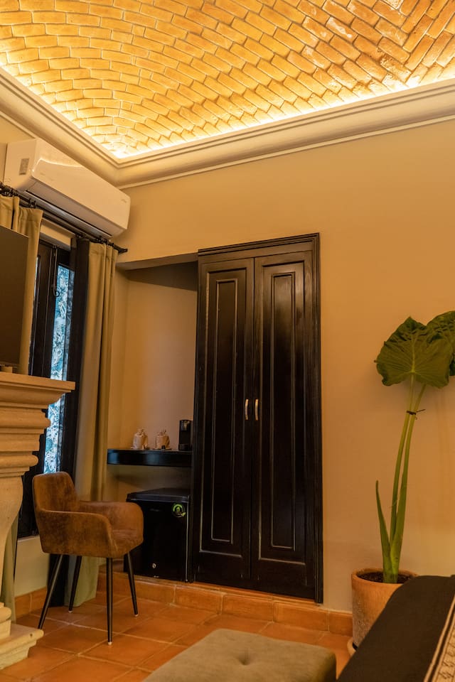 Charming Queen Room with Brick Ceiling