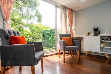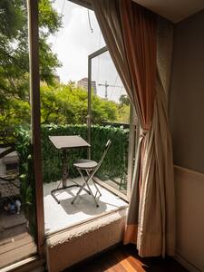 Enjoy your morning coffee or a relaxing evening drink on the private balcony, offering a serene outdoor space with views of the city. It’s a great place to unwind and soak in the atmosphere of Mexico City.