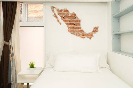 Step into a cozy and inviting living area designed for relaxation after a day of exploring Mexico City. The space is thoughtfully furnished with comfortable seating and a welcoming atmosphere, perfect for unwinding or planning your next adventure.