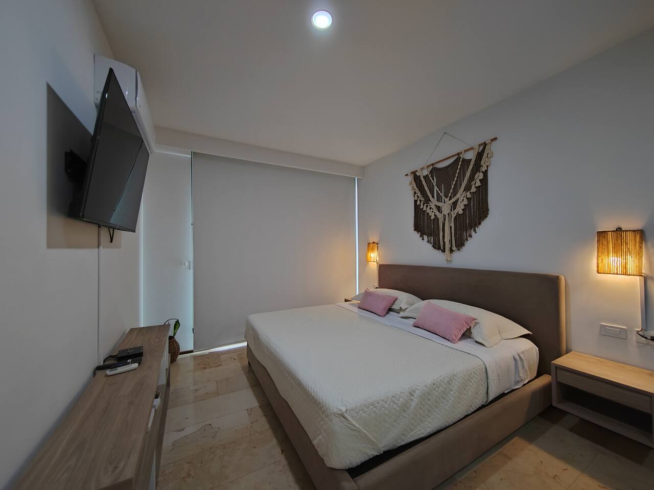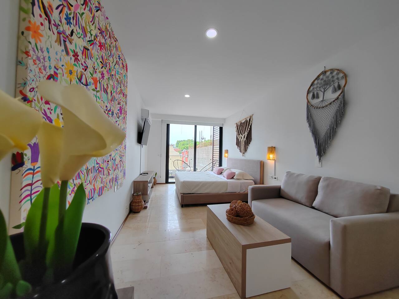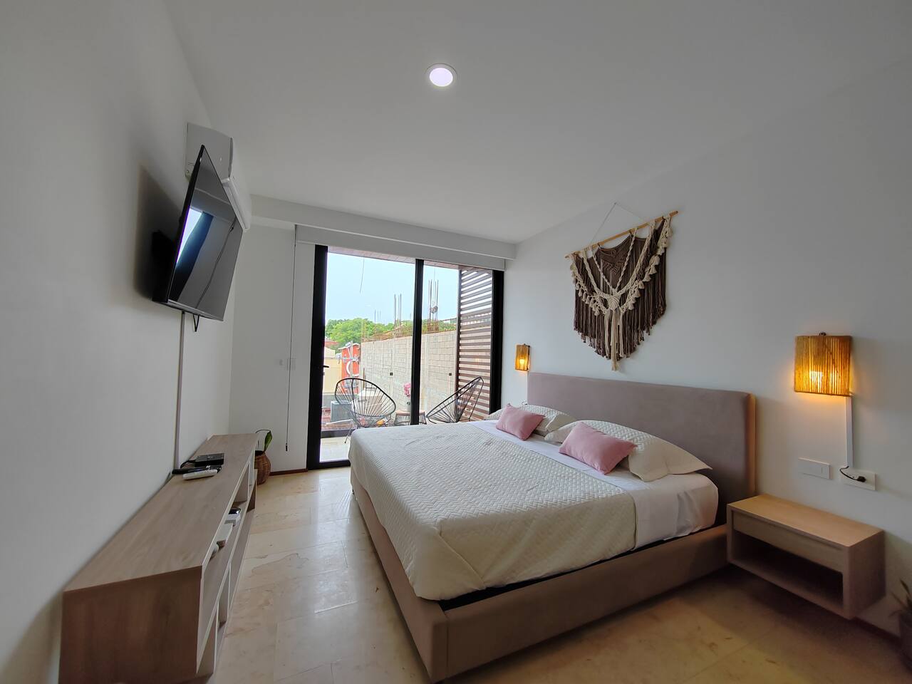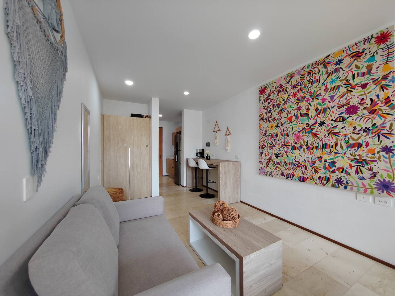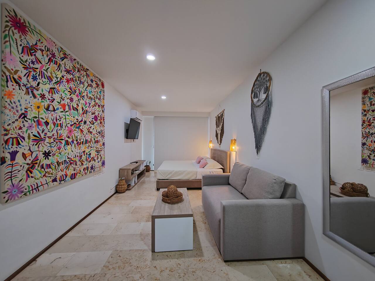 Escape to the stunning beaches of Playa del Carmen in this cozy and modern studio apartment! Perfect for small families, couples, or groups of friends, this space comfortably accommodates up to 4 guests. Relax and recharge with all the comforts of home, plus access to luxurious building amenities, including a rooftop pool, jacuzzi, and a gym. Located just steps from vibrant nightlife, world-class dining, and the famous Fifth Avenue. This thoughtfully designed studio includes: - A comfortable bedroom with a plush king bed - A sofa bed in the living area, ideal for additional guests - A fully equipped kitchen with everything you need to prepare meals - A modern bathroom with fresh towels and essential toiletries - A private balcony with outdoor furniture, perfect for relaxing and enjoying the tropical breeze The apartment is located on the second floor of a secure 6-floor building, offering a peaceful retreat with easy access to all amenities. Guests will have full access to the apartment and building amenities, including: -A stunning rooftop pool with panoramic views -A relaxing jacuzzi for ultimate comfort -A well-equipped gym to stay active during your stay -Shared spaces designed to provide a luxurious experience We are committed to making your stay as smooth and enjoyable as possible. While we respect your privacy, we’re just a message or call away if you need assistance, recommendations, or have any questions. The building has 24/7 security to ensure your safety and peace of mind. Playa del Carmen is a lively destination; some ambient noise may be expected. Fresh linens, towels, and essentials are provided for your comfort. Smoking and pets are not allowed in the apartment.