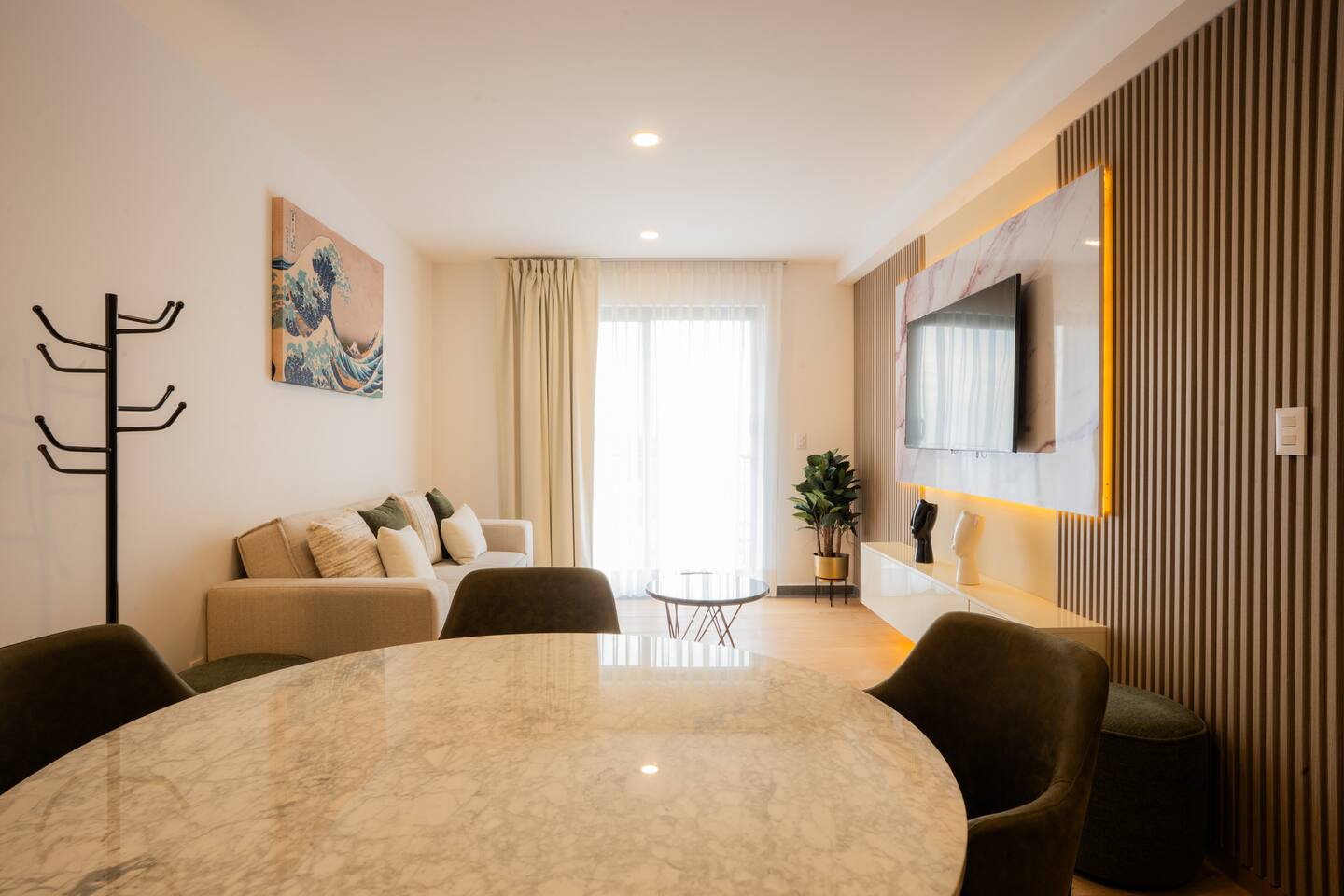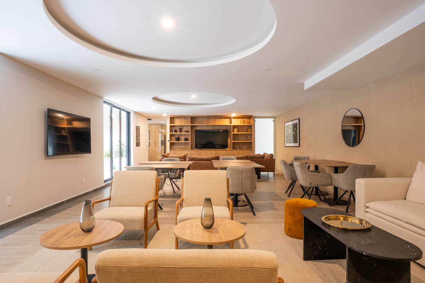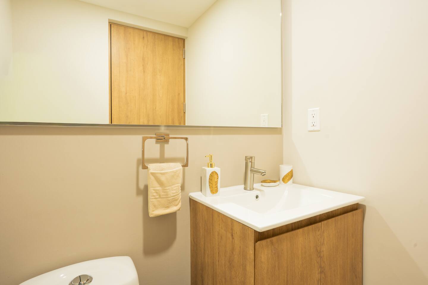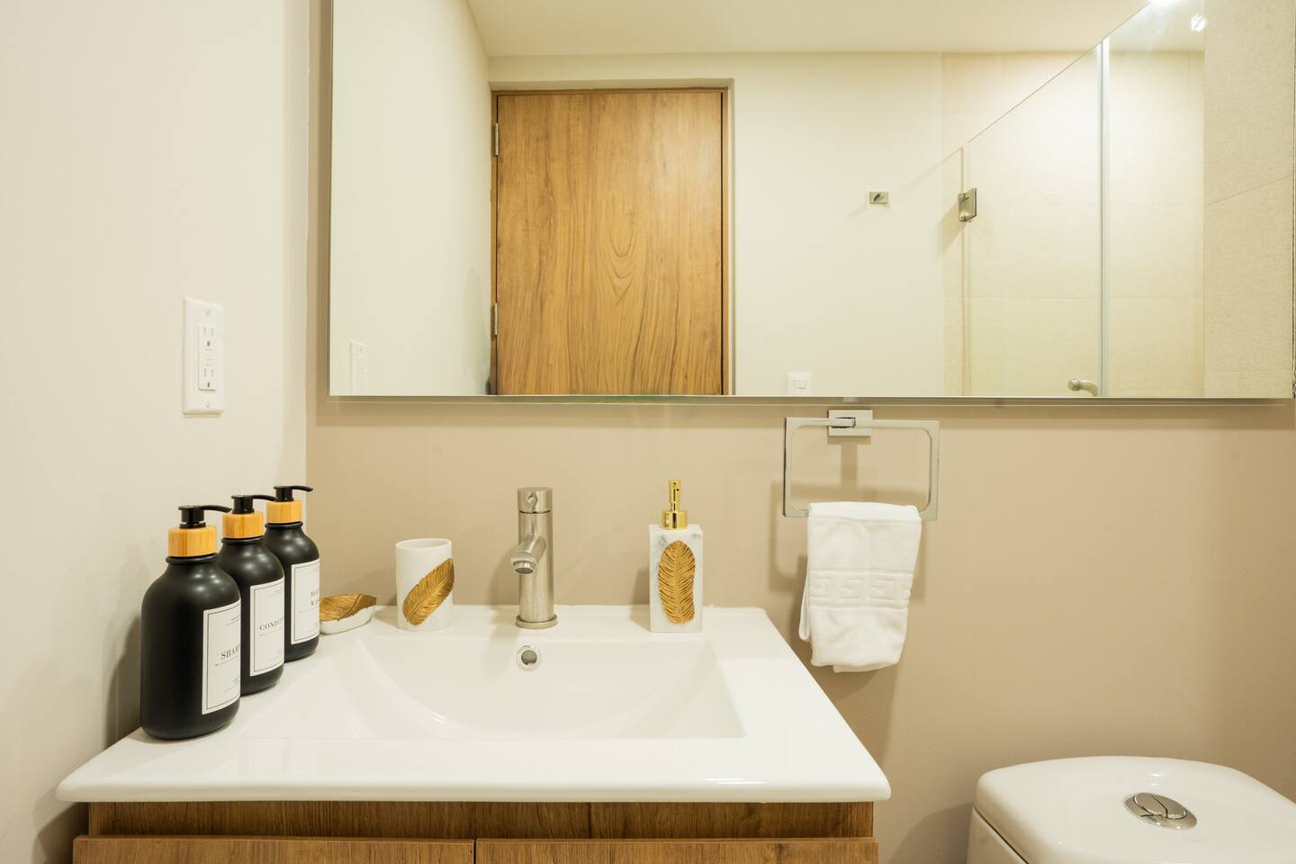 Welcome to your modern retreat in a brand-new building with hotel-style amenities. This bright and elegant 2-bedroom, 2-bathroom apartment on the 7th floor offers the perfect blend of comfort, style, and convenience — ideal for both business and leisure stays. Enjoy a sun-filled living space, high-end finishes, and full access to the building’s incredible amenities including a rooftop pool, gym, coworking area, and 24-hour security. Step into a beautifully designed apartment featuring two cozy bedrooms with queen-size beds and large flat-screen TVs in every room — including the living area. The open-concept layout includes a fully equipped kitchen, a dining table for four, and a bright living room that opens onto a private balcony connecting both bedrooms. Each of the two bathrooms is modern and fully stocked with everything you need for a comfortable stay. Guests have full access to all areas of the apartment and to all building amenities, including: Rooftop Pool with stunning city views and lounge areas Fully Equipped Gym with new cardio and weight equipment Coworking Space on the ground floor — spacious, modern, and ideal for remote work Children’s Playroom filled with games and plenty of space to play Relaxing Lobby Area with comfortable seating 24-hour Security and private parking space We offer a seamless self-check-in experience for your convenience. Our team is always available via message or phone if you need assistance or recommendations during your stay — we’re happy to help make your experience unforgettable. This is a brand-new building, so everything — from the amenities to the furniture — is fresh and modern. Please note that some areas of the building may still have minor finishing touches in progress. Quiet hours are respected to ensure a relaxing stay for everyone.