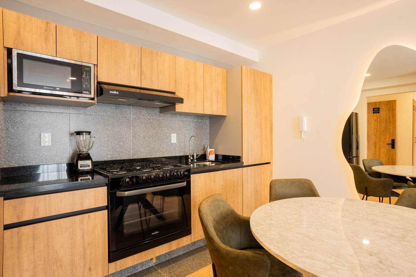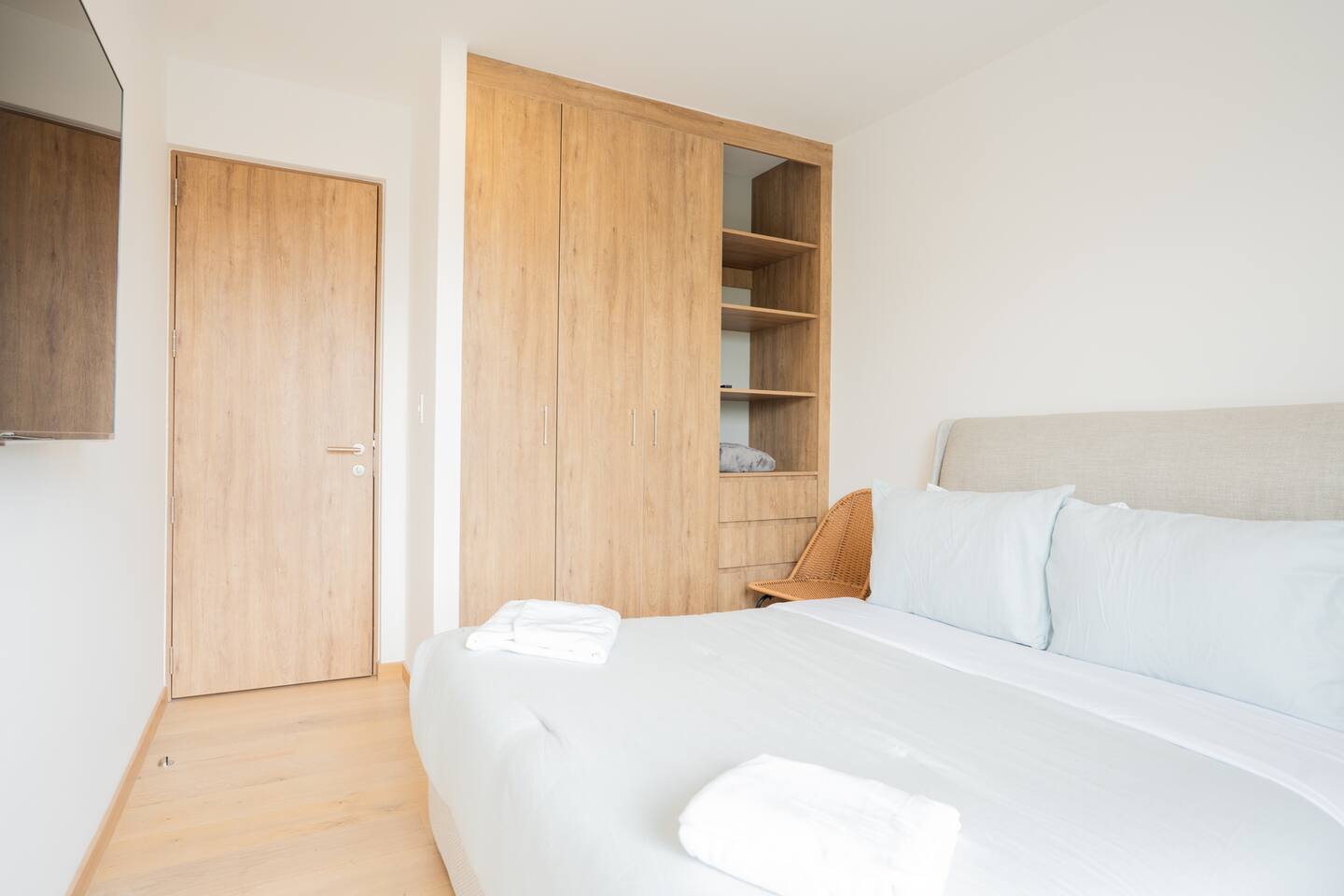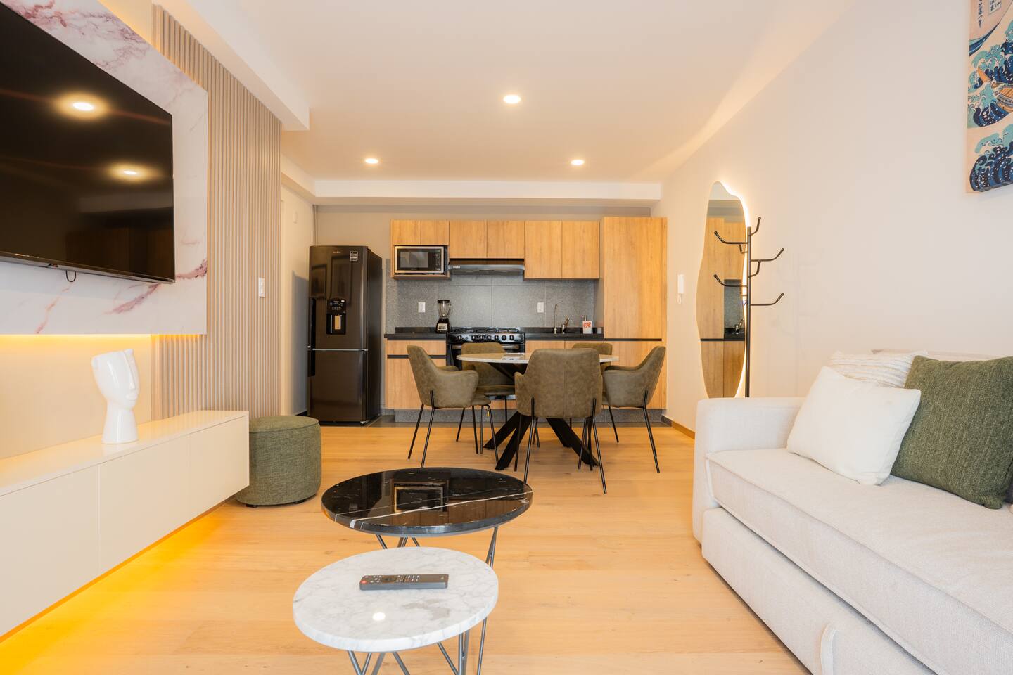 Welcome to your modern retreat in a brand-new building with hotel-style amenities. This bright and elegant 2-bedroom, 2-bathroom apartment on the 7th floor offers the perfect blend of comfort, style, and convenience — ideal for both business and leisure stays. Enjoy a sun-filled living space, high-end finishes, and full access to the building’s incredible amenities including a rooftop pool, gym, coworking area, and 24-hour security. Step into a beautifully designed apartment featuring two cozy bedrooms with queen-size beds and large flat-screen TVs in every room — including the living area. The open-concept layout includes a fully equipped kitchen, a dining table for four, and a bright living room that opens onto a private balcony connecting both bedrooms. Each of the two bathrooms is modern and fully stocked with everything you need for a comfortable stay. Guests have full access to all areas of the apartment and to all building amenities, including: Rooftop Pool with stunning city views and lounge areas Fully Equipped Gym with new cardio and weight equipment Coworking Space on the ground floor — spacious, modern, and ideal for remote work Children’s Playroom filled with games and plenty of space to play Relaxing Lobby Area with comfortable seating 24-hour Security and private parking space We offer a seamless self-check-in experience for your convenience. Our team is always available via message or phone if you need assistance or recommendations during your stay — we’re happy to help make your experience unforgettable. This is a brand-new building, so everything — from the amenities to the furniture — is fresh and modern. Please note that some areas of the building may still have minor finishing touches in progress. Quiet hours are respected to ensure a relaxing stay for everyone.