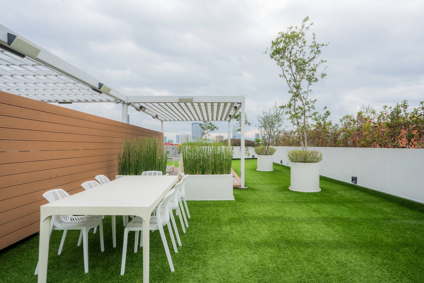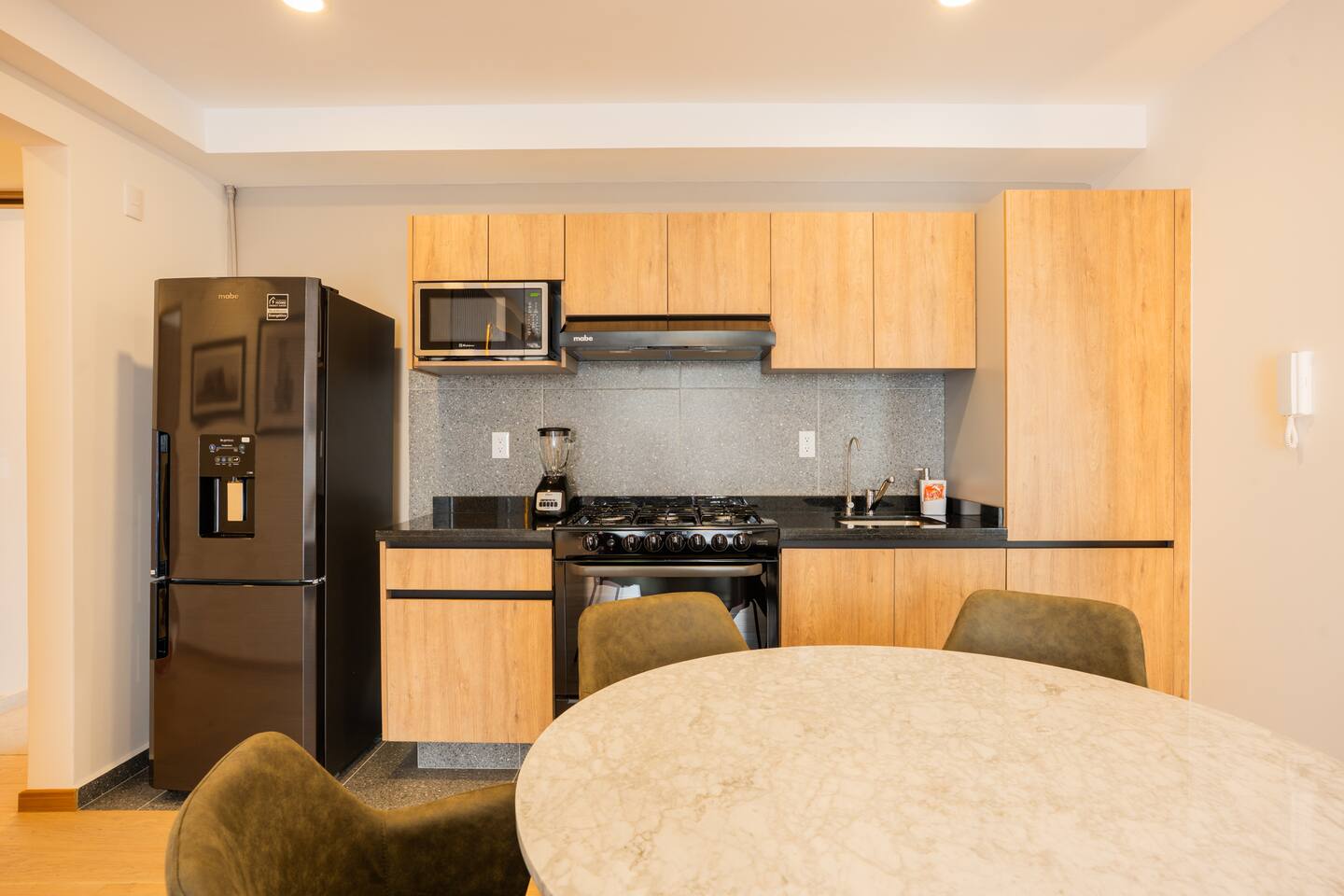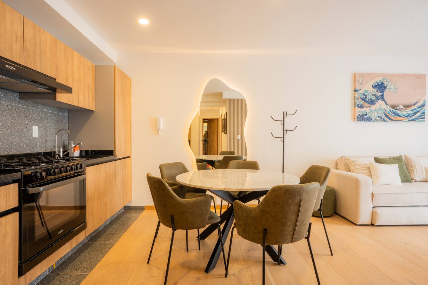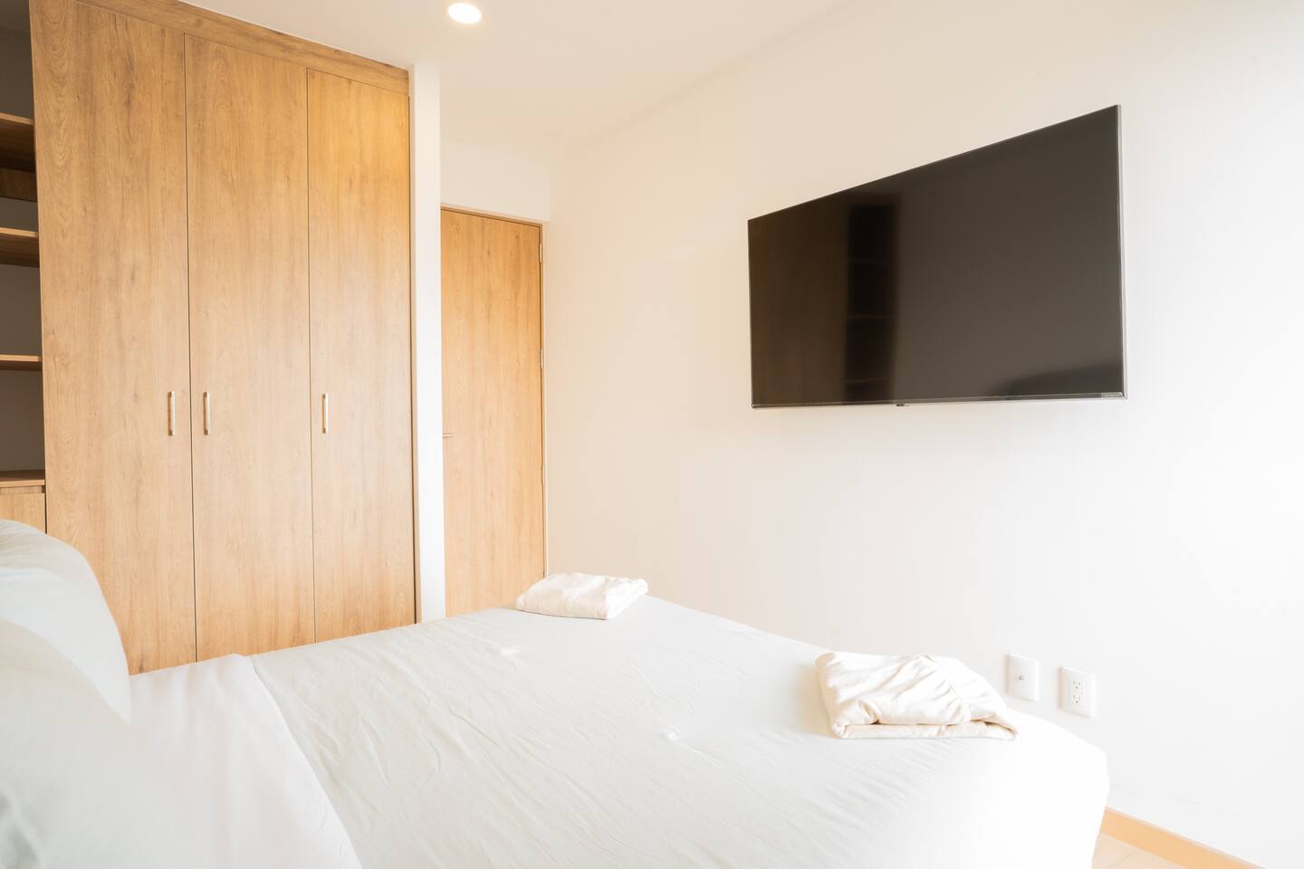 Welcome to your modern retreat in a brand-new building with hotel-style amenities. This bright and elegant 2-bedroom, 2-bathroom apartment on the 7th floor offers the perfect blend of comfort, style, and convenience — ideal for both business and leisure stays. Enjoy a sun-filled living space, high-end finishes, and full access to the building’s incredible amenities including a rooftop pool, gym, coworking area, and 24-hour security. Step into a beautifully designed apartment featuring two cozy bedrooms with queen-size beds and large flat-screen TVs in every room — including the living area. The open-concept layout includes a fully equipped kitchen, a dining table for four, and a bright living room that opens onto a private balcony connecting both bedrooms. Each of the two bathrooms is modern and fully stocked with everything you need for a comfortable stay. Guests have full access to all areas of the apartment and to all building amenities, including: Rooftop Pool with stunning city views and lounge areas Fully Equipped Gym with new cardio and weight equipment Coworking Space on the ground floor — spacious, modern, and ideal for remote work Children’s Playroom filled with games and plenty of space to play Relaxing Lobby Area with comfortable seating 24-hour Security and private parking space We offer a seamless self-check-in experience for your convenience. Our team is always available via message or phone if you need assistance or recommendations during your stay — we’re happy to help make your experience unforgettable. This is a brand-new building, so everything — from the amenities to the furniture — is fresh and modern. Please note that some areas of the building may still have minor finishing touches in progress. Quiet hours are respected to ensure a relaxing stay for everyone.