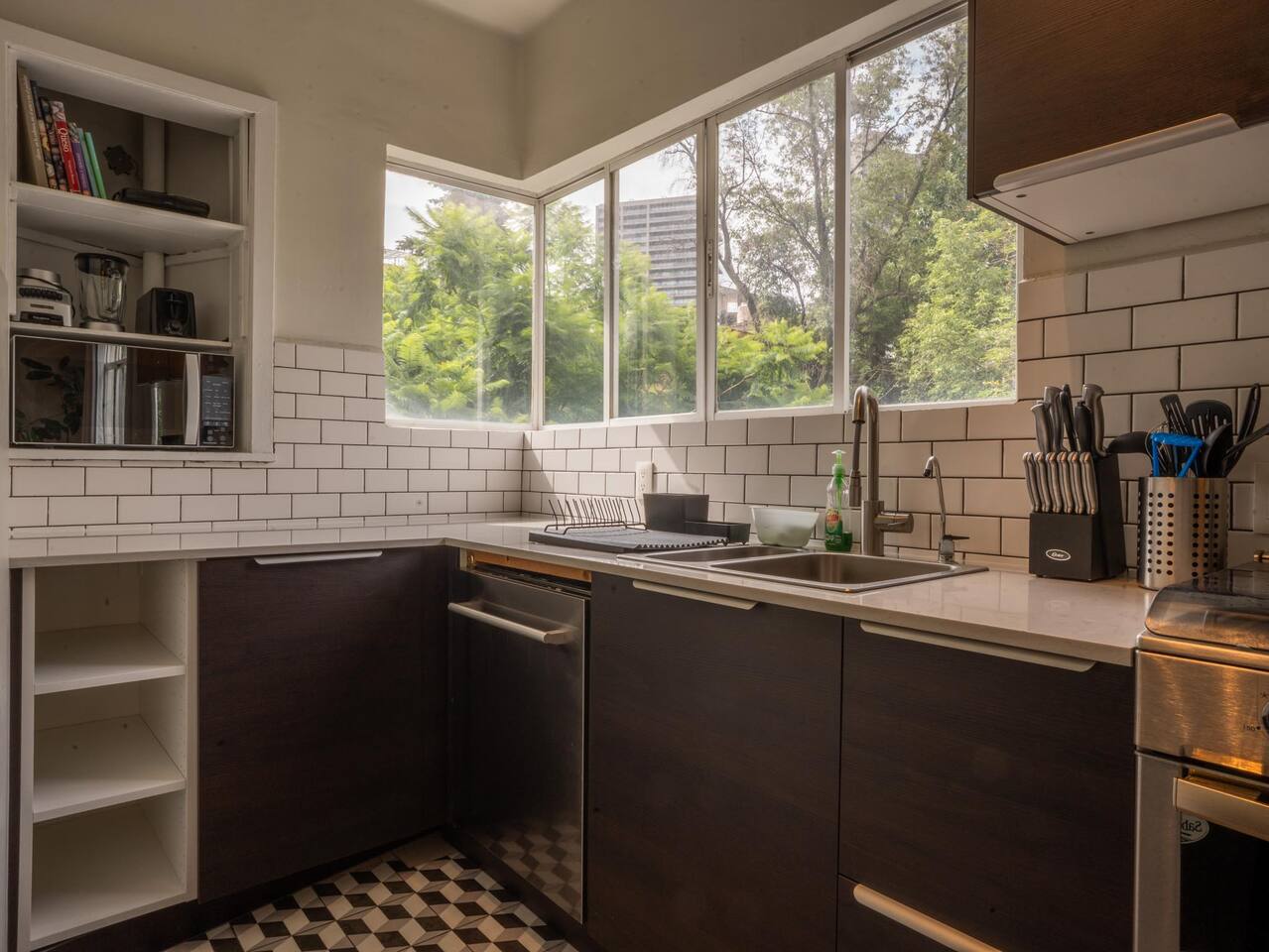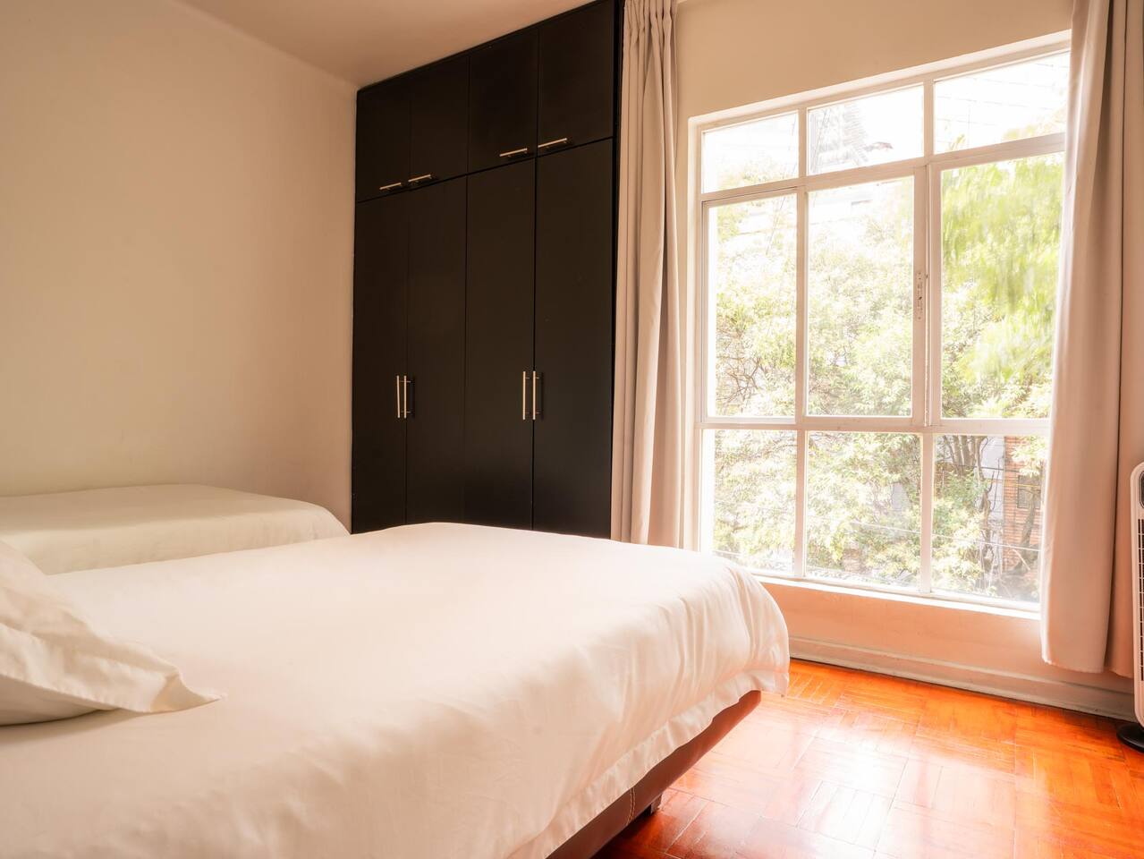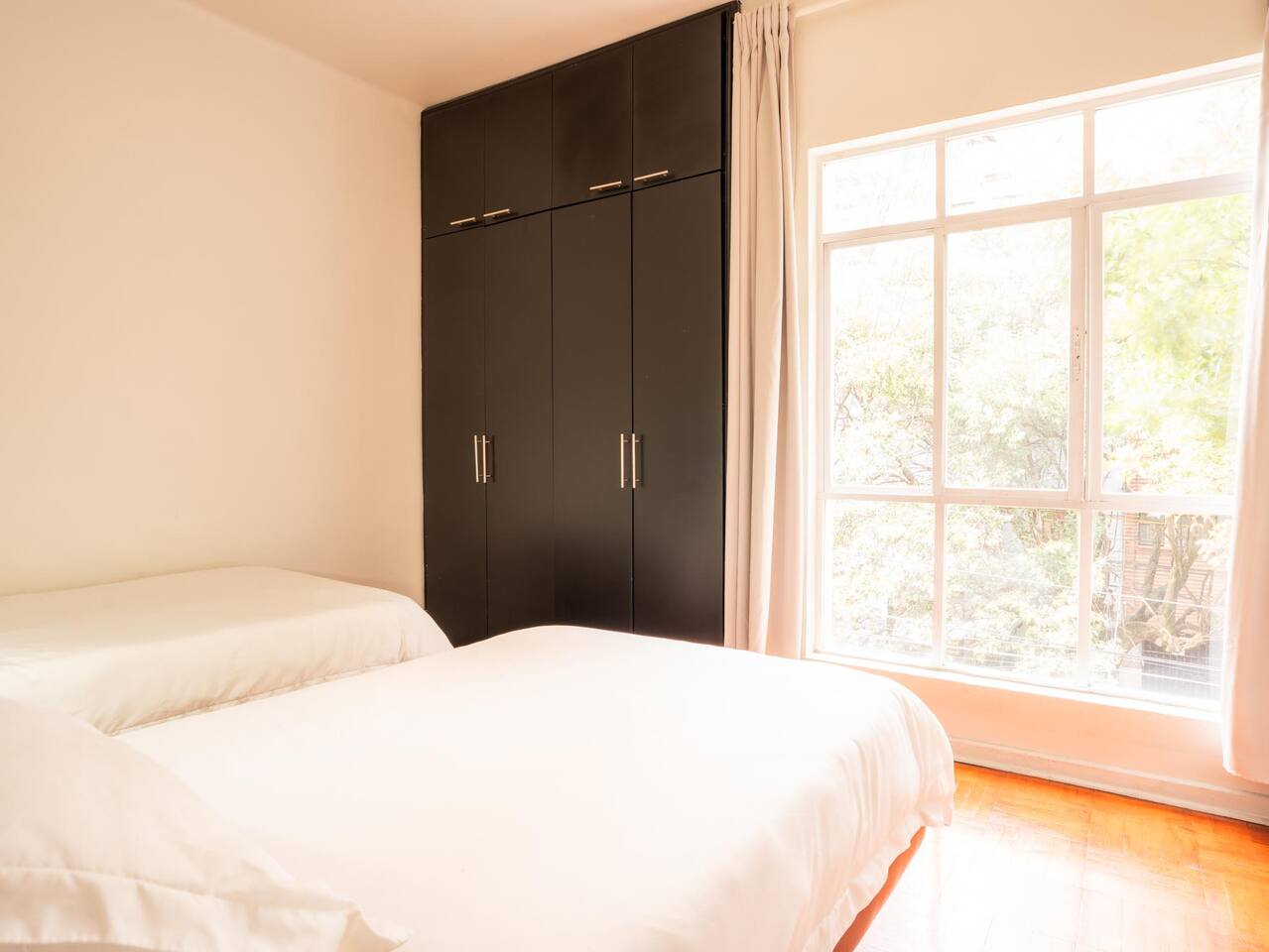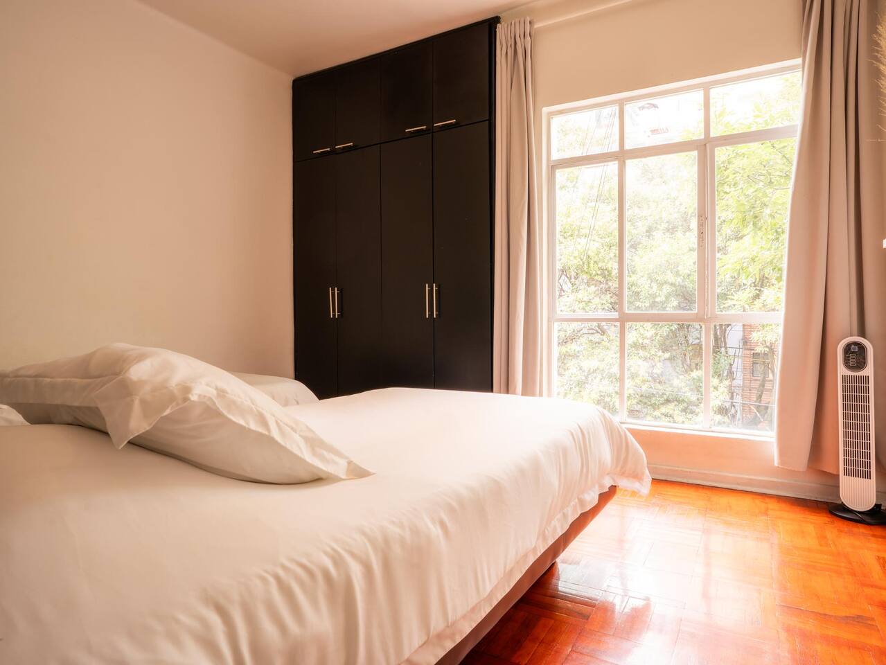 For those working remotely, the apartment offers two dedicated workstations—one of them set up with an ergonomic chair for extra comfort. Bright natural light fills the space, creating a welcoming atmosphere in one of Mexico City’s most sought-after neighborhoods.